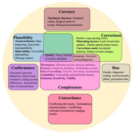 A schematic representation of common dimensions of data quality in EHRs [,].