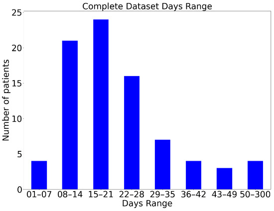 Besides analysing each dataset separately, we also merged them, analyzing the overall performance on a more variegated collection. Due to differences in data sources, the tabular features were not fully aligned, resulting in a merged dataset with only a subset of the available features. Prior to merging, both datasets underwent pre-processing to ensure they contained significant, independent, normalized features without missing values. As a result, the Vanvitelli dataset was reduced to 36 features, while the Cotugno dataset retained at 49 features. After merging, the final dataset included 14 common features along with two shared outputs (LOS and outcome). Additionally, an extra feature, derived from the LOS output, was created for model training. This feature, termed “range”, represents a discretized version of the LOS, with 7-day intervals (e.g., 01–07 days, 08–14 days). The final category included patients with 50 or more days of hospitalization.