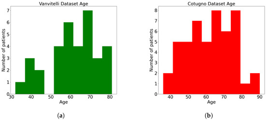 (a) Vanvitelli dataset distribution on age feature. (b) Cotugno dataset distribution on age feature.