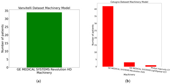(a) Vanvitelli dataset distribution on CT machine model feature. (b) Cotugno dataset distribution on CT machine model feature.
