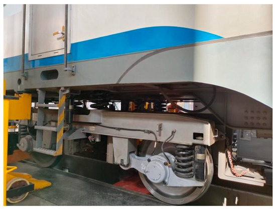 The measured wheel–track interaction force data used in this paper were derived from a heavy-freight transportation line in China. Figure 5 demonstrates the instrumented wheelset installed in the heavy-duty freight train. It can facilitate the real-time measurement of the wheel–track interaction force. The force-measuring wheelset can continuously capture key mechanical data during the running of the freight train, providing an important basis for vehicle dynamics analysis and suspension parameter estimation.