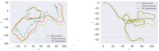 The EKF is arguably the most widely used estimation algorithm for nonlinear systems [,]. A notable variant of the EKF is the Extended Information Filter (EIF); mathematically, the EKF and EIF are equivalent, but EIF matrices link poses and landmarks, which is critical to our proposed method, EIF-SlideWindow.