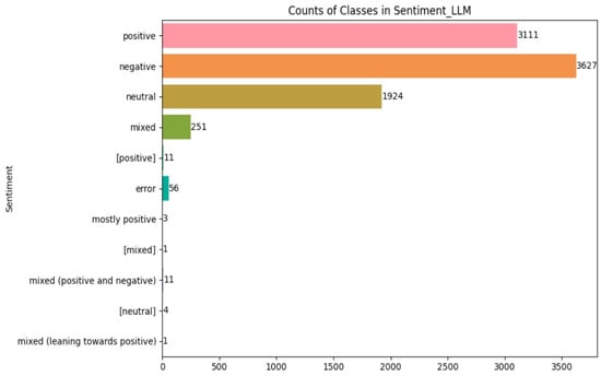 To eliminate data bias, an equal number of records 3000 each for the negative, neutral, and positive sentiment categories was selected. This strategy ensures that the analysis re- mains balanced and free from skewness caused by uneven data distribution. The decision to standardize the record count was also influenced by cost considerations. Analyzing longer texts with the OpenAI GPT-4 model incurs higher costs, so limiting the number of records analyzed was a practical approach to managing expenses while maintaining data integrity.
