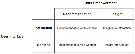 Figure 2 shows that AI and ML-based user empowerment can be applied for every Big Data analysis pipeline processing step. To systematically assess this, some authors of this paper introduced a use case taxonomy demonstrating exemplary user-empowering scenarios for each processing step [5]. Examples comprise the recommendation for suitable data wrappers while integrating data or information on potential anomalous data samples while analyzing data [5]. The use case taxonomy differentiates two different targets of user empowerment: informing users about potential system interactions or the information system’s content [5]. This information can further be divided into active recommendations and pure communication of insights. Figure 3 displays these user empowerment applications within a two-by-two matrix.