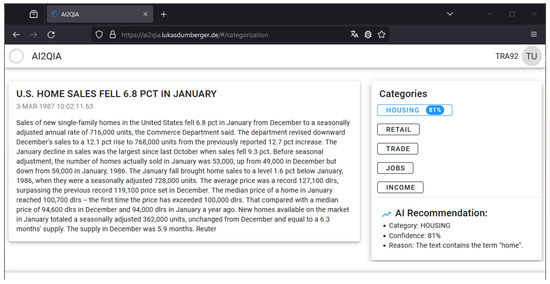 Particularly in task seven, non-AI-supported users made more mistakes. The users’ confusion may have been triggered by the title of the newspaper article: “French Household Consumption Falls In February”. Including the word “household” misled many participants into assigning the article to the category “Housing” rather than the correct category, “Retail”. The longer processing time of the AI-supported users, coupled with the correct recommendation from the AI, significantly reduced errors in this group. In this instance, the AI genuinely assisted in error reduction. The results of the Data Visualization component are not entirely reliable in this regard.