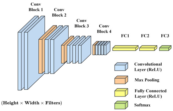 We require the earlier feature maps and kernels to create the feature map of the Jth convolutional layer. The pooling procedure is used to reduce the dimensionality of the input and, at the same time, make the computation efficient. Max pooling includes finding the maximum value using sliding windows over the feature maps. A CNN structure is shown in Figure 2.