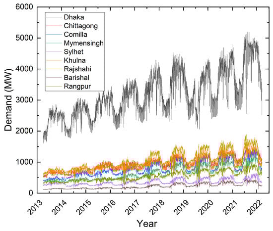 Figure 4. Load demand of nine regions from 2014 to 2022.