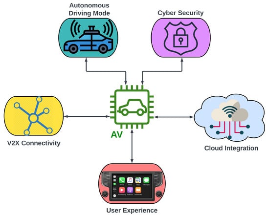 - Bordoloi, U.; Chakraborty, S.; Jochim, M.; Joshi, P.; Raghuraman, A.; Ramesh, S. Autonomy-driven Emerging Directions in Software-defined Vehicles. In Proceedings of the 2023 Design, Automation & Test in Europe Conference & Exhibition (DATE), Antwerp, Belgium, 17–19 April 2023; pp. 1–6. [Google Scholar] [CrossRef]