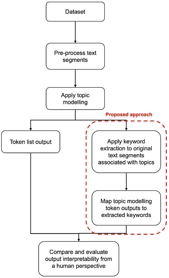 The remainder of this paper is structured as follows: Section 2 presents the related work, Section 3 discusses the selection of text corpora used to support the experiments herein and the techniques used to prepare the data for such experiments, Section 4 discusses topic modelling and how it was applied to the datasets, Section 5 discusses the proposed methodology of using keyword extraction to extended topic modelling outputs, Section 6 evaluates the ease of interpreting such outputs by human readers, Section 7 discusses the generalisation of the proposed method by using other approaches as the underlying topic modelling methods, Section 8 compares the descriptors generated by the proposed method with those generated by state-of-the-art LLMs, Section 9 discusses the generalisation of the proposed method when using new data, and finally, Section 11 concludes the paper.