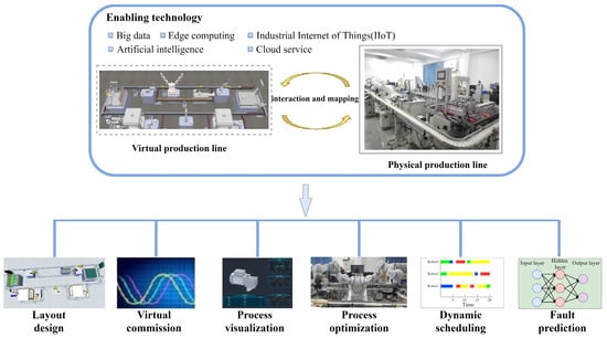 A DT should not only reflect the state of the physical production line in the virtual space but also provide an effective method of the production line’s optimization, scheduling, maintenance, fault prediction, and so on. The realization of these functions involves the following key technologies.