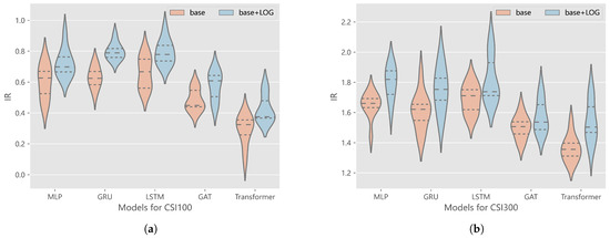 Results of IR and quantiles (0.25/0.5/0.75 quantiles). (a) Distribution of IR for CSI100. (b) Distribution of IR for CSI300.