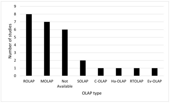 Additionally, there were six instances in which the type of OLAP was not explicitly categorized, labeled as Not Available (NA) in
