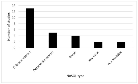 Figure 5. In the column-oriented category, HBase stands out as the predominant choice, featured in eleven articles [