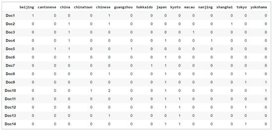 Below, we demonstrate the application of NMF to extract terms from a corpus of 14 documents concerning the topics of China and Japan. The selection of topics is intentional, drawing from an inspiring example in a classic textbook on information retrieval (refer to [], ch.13). The original example explores a nuanced case of binary classification involving five documents, as shown in Table 1. Our enhancement of this example aims to offer a clearer understanding of NMF’s capabilities, assessing standard versus semantic capacities. Consequently, our example is continuous, and we will continue it in Section 3.2 and Section 3.3 of this Section.
