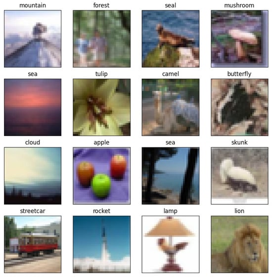 CIFAR100 is one of the more classical and widely used datasets. It contains 60,000 32 × 32 RGB images of 100 different classes of 20 different categories or superclasses. Each class has 500 training images and 100 testing images. Images of CIFAR100 dataset are equally distributed across all classes, so each class has 500 training images and 100 testing images. Each superclass has an equal number of classes that correspond to it, making it 2500 training images and 500 testing images per superclass. Figure 1 shows a sample of CIFAR100 dataset.