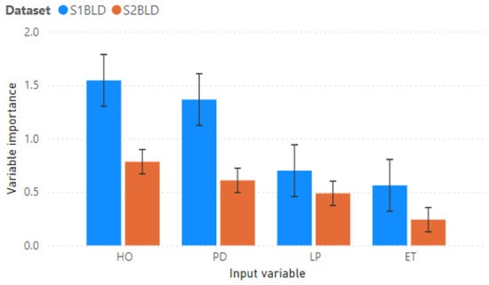 Figure 11 summarises the implementation workflow we used to investigate the development of the predictive model. Data exploration was the first step of the analytic workflow, which examined data characteristics including the importance and correlations of the input variables to the output parameters. We have also looked at the importance of the four process inputs to the two target variables. Figure 12 (cf. Table 3) shows the linear correlations between the four process input parameters in the sample dataset and the target variables. It is evident that all four input parameters are better predictors for sample 1 border length density (S1BLD) compared to the ones from sample 2 (S2BLD). It is also clear that the HO and PD process inputs are more important than LD and ET in predicting both defect densities, S1BLD and S2BLD. Overall, the low linear correlation r-values given in Table 3 suggest that nonlinear machine learning models may better predict the product defects than their linear counterparts, as we will see later (Results and Discussion section).