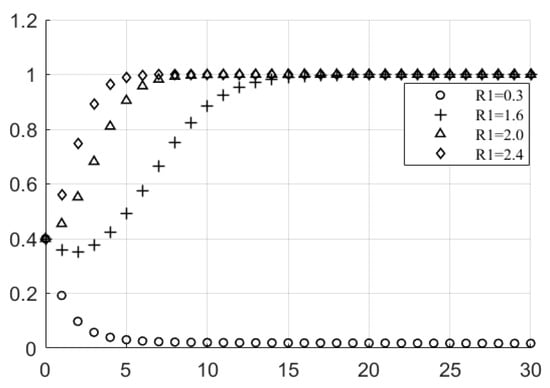 Evolutionary Game Theory (EGT), with roots in biological evolution, was initially proposed by Smith and Price in 1973 [], concurrently giving rise to the concept of Evolutionarily Stable Strategies (ESS). ESS is a static concept that denotes the predominant strategy adopted by the majority of individuals within a population in a specific ecological context. This strategy, which yields higher payoffs than its alternatives, prevents it from being displaced by other strategies. The ESS effectively embodies the principle that populations that fail to adopt an evolutionarily stable strategy are likely to be outcompeted and ultimately eliminated from the evolutionary process []. Additionally, ESS is a strict refinement of the Nash equilibrium [], indicating that, given that the other participants adhere to their established strategies, there exists no incentive for any individual participant to unilaterally alter their current strategy []. Adding to this base, Taylor and Jonker introduced the idea of Replicator Dynamics (RD) by incorporating the mechanism of selection []. At its core, this theory postulates that as evolutionary game players continually adjust their strategies, the percentage of individuals who gradually adopt the most advantageous approach increases within the population. Furthermore, they employed differential equations or systems thereof to depict the dynamic adjustment process of players’ strategy choices. The two fundamental principles of EGT, ESS and RD, together show the dynamic evolutionary route that players take in order to arrive at a stable strategy. EGT posits that individual socio-economic behavior unfolds over an extended period, with agents endowed with bounded rationality and initiative. Single-instance games seldom lead all players to an optimal state; therefore, agents must continuously improve their performance based on real-world situations and other players’ activities. By comparing the total benefits of varying strategies, a “survival of the fittest” process takes place, leading to convergence upon stable solutions that are individually advantageous.