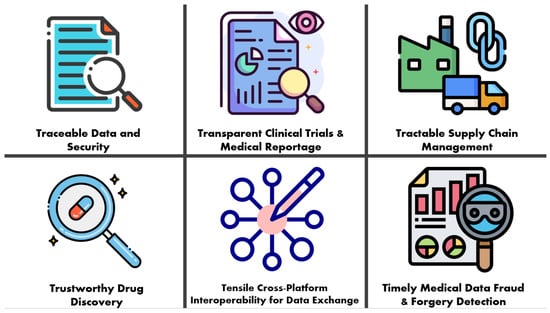 - Liu, Q.; Liu, Y.; Luo, M.; He, D.; Wang, H.; Choo, K.K.R. The Security of Blockchain-Based Medical Systems: Research Challenges and Opportunities. IEEE Syst. J. 2022, 16, 5741–5752. [Google Scholar] [CrossRef]