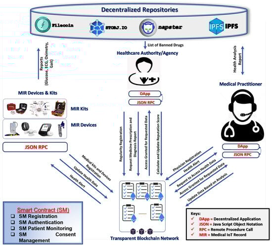 - Ahmad, R.W.; Salah, K.; Jayaraman, R.; Yaqoob, I.; Ellahham, S.; Omar, M. The role of blockchain technology in telehealth and telemedicine. Int. J. Med. Inform. 2021, 148, 104399. [Google Scholar] [CrossRef] [PubMed]