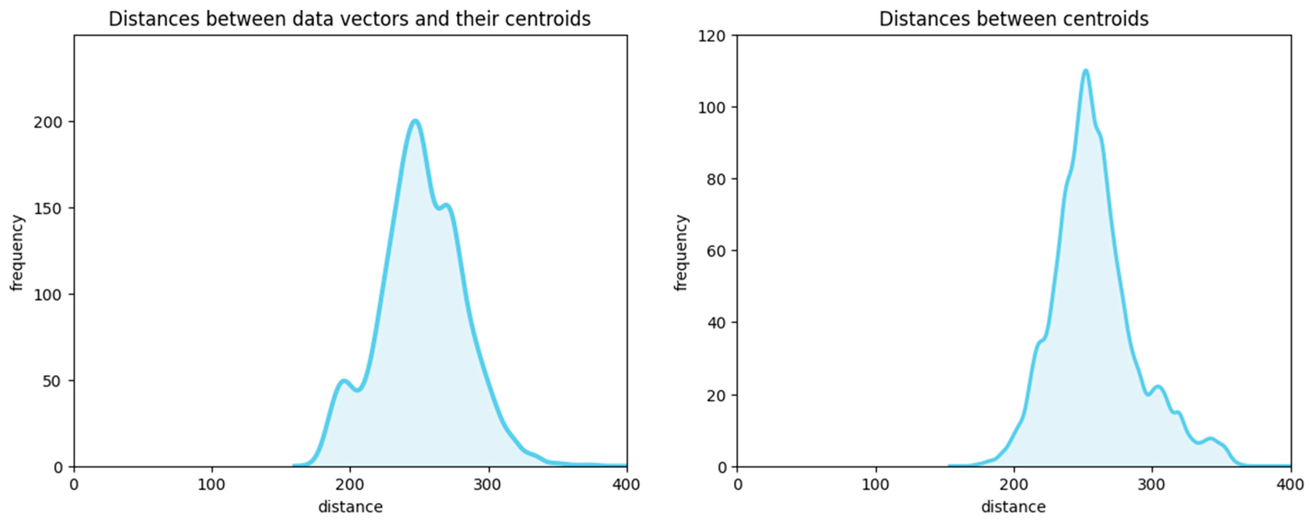 Clustering algorithms are computationally expensive, especially agglomerative clustering algorithms. Therefore, sampling is traditionally used to construct IVF indexes on large datasets. In our case, random sampling was used to find the centroids, and the cluster structure for the SIFT10M dataset was built using 10,000 data vectors (0.1% from the whole dataset). After finding the positions of all centroids, each data vector from the whole dataset was assigned to its nearest centroid. This may have slightly reduced the overall quality of the index; however, this sampling enabled us to reduce the indexing time. In several experiments, we used greedy agglomerative clustering algorithms, which result in a better objective function value of the k-means clustering problem (i.e., better squared distance sum value); however, this did not lead to a significant increase in the ANN search performance.