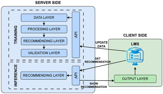 It is important to note that the RS developer always defines the layers and does not allow them to be modified. Their use by whoever integrates the system into a platform will depend solely on the capabilities provided by the developed system. The role of the person in charge of integrating the system into an educational platform is to ensure that the necessary data for the system is properly collected within the platform and transmitted following the structure designed by the system’s developer.