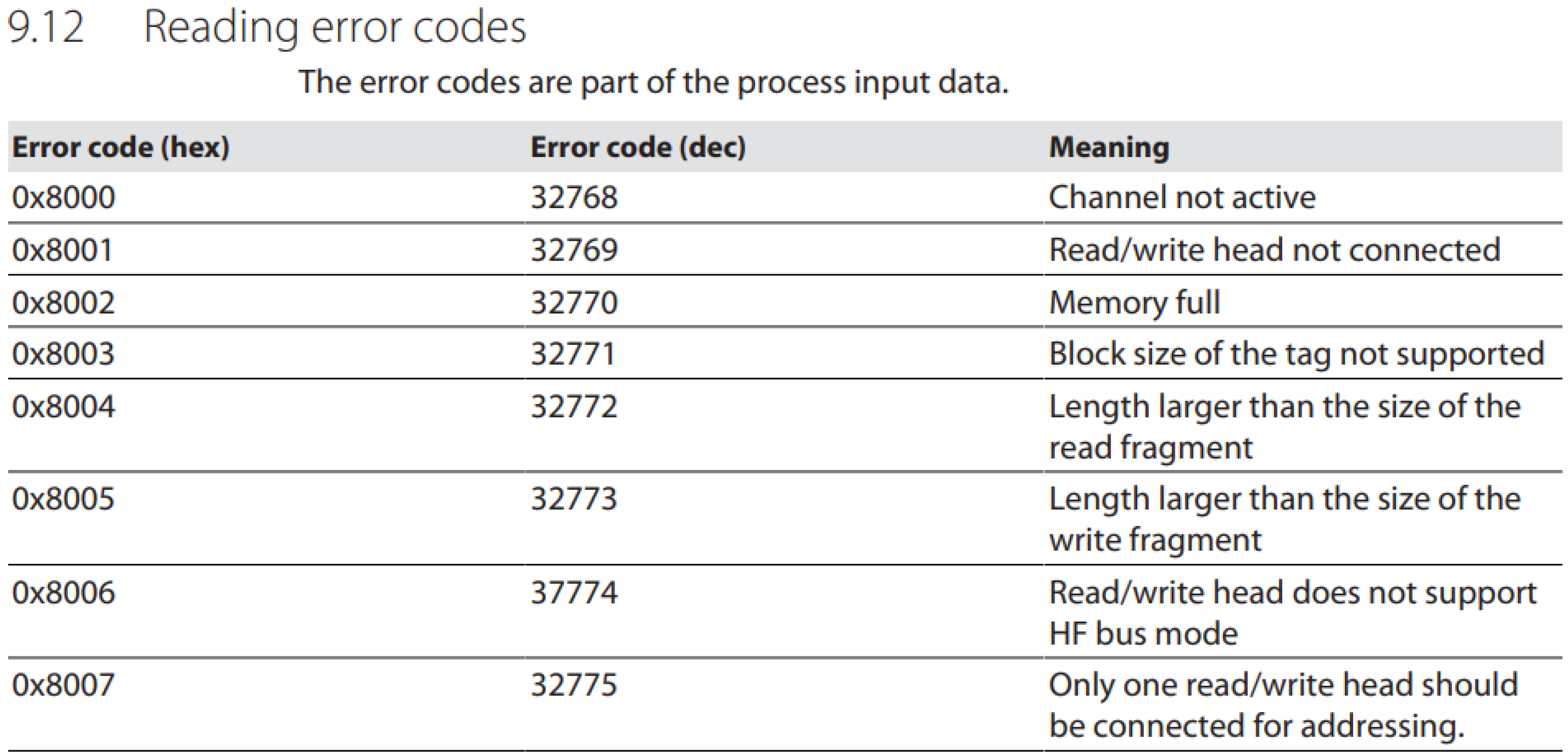 StaubliOvrTempCastings: Overtemperature on the housing. StaubliOvrTempDsiBoard: Overtemperature on the DSI board. StaubliOvrTempGlobalPtc: Overtemperature at one of the PTC sensors in the robot arm. StaubliOvrTempMotor135: Overtemperature at the motors of axes 1, 3 and 5. StaubliOvrTempMotor246: Overtemperature at the motors of axes 2, 4 and 6. StaubliSpeedCtrlFault: Error on the speed controller. StaubliProgramAbort: Program aborted. GripperCloseError: Gripper cannot be closed, check sensors BG1/BG3. RassGripperOpenError: Gripper cannot be opened, check sensors BG1/BG3. |
