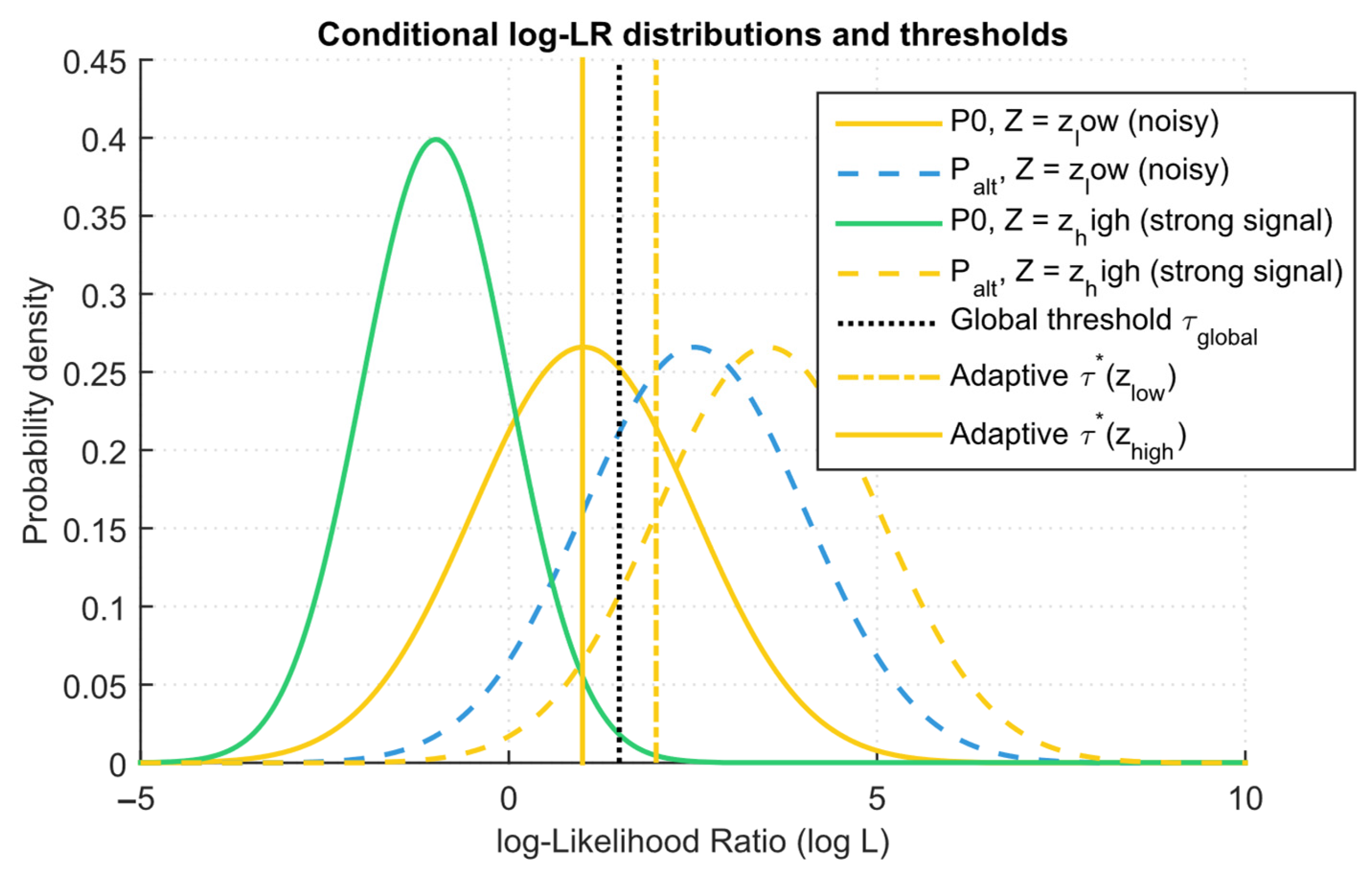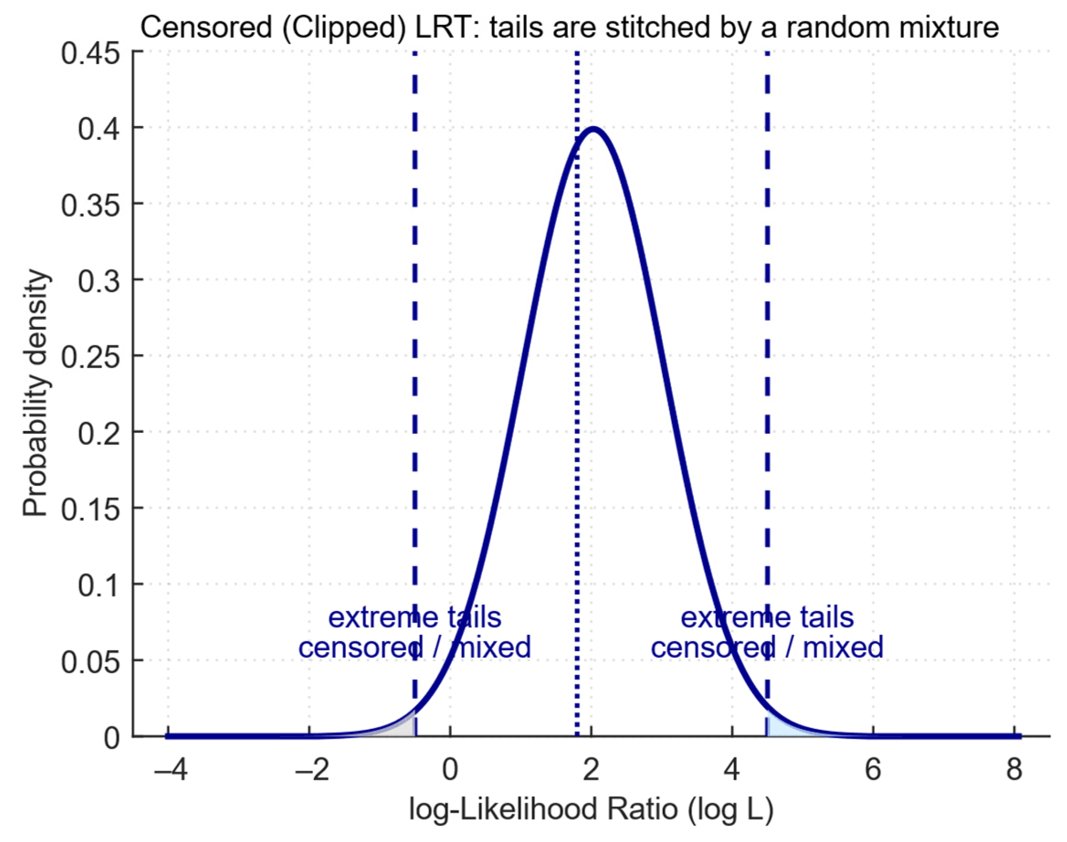 The classical approach [8,10,11] compares the likelihood and constructs tests based on the likelihood ratio. Let us introduce the likelihood ratio function of the form:
