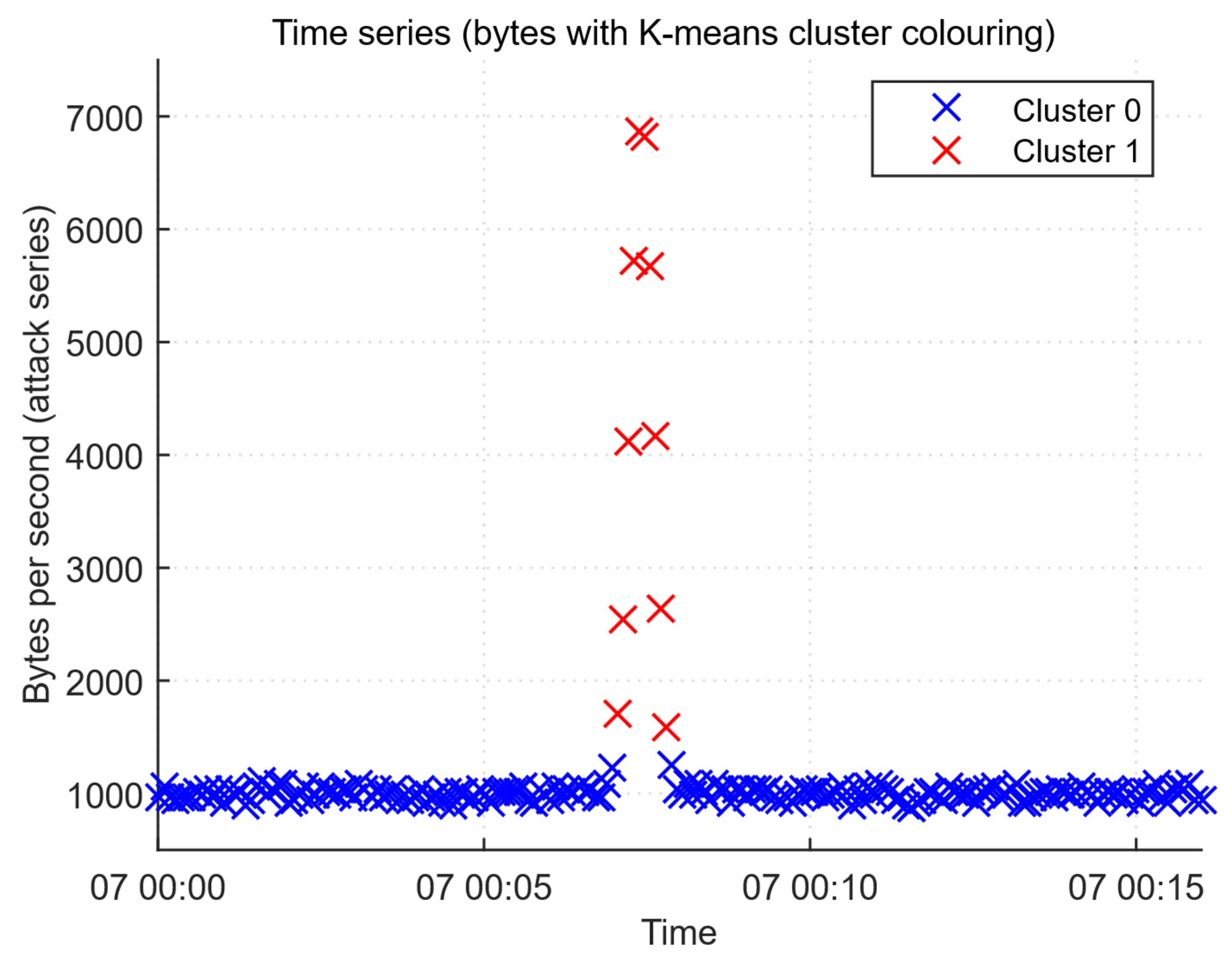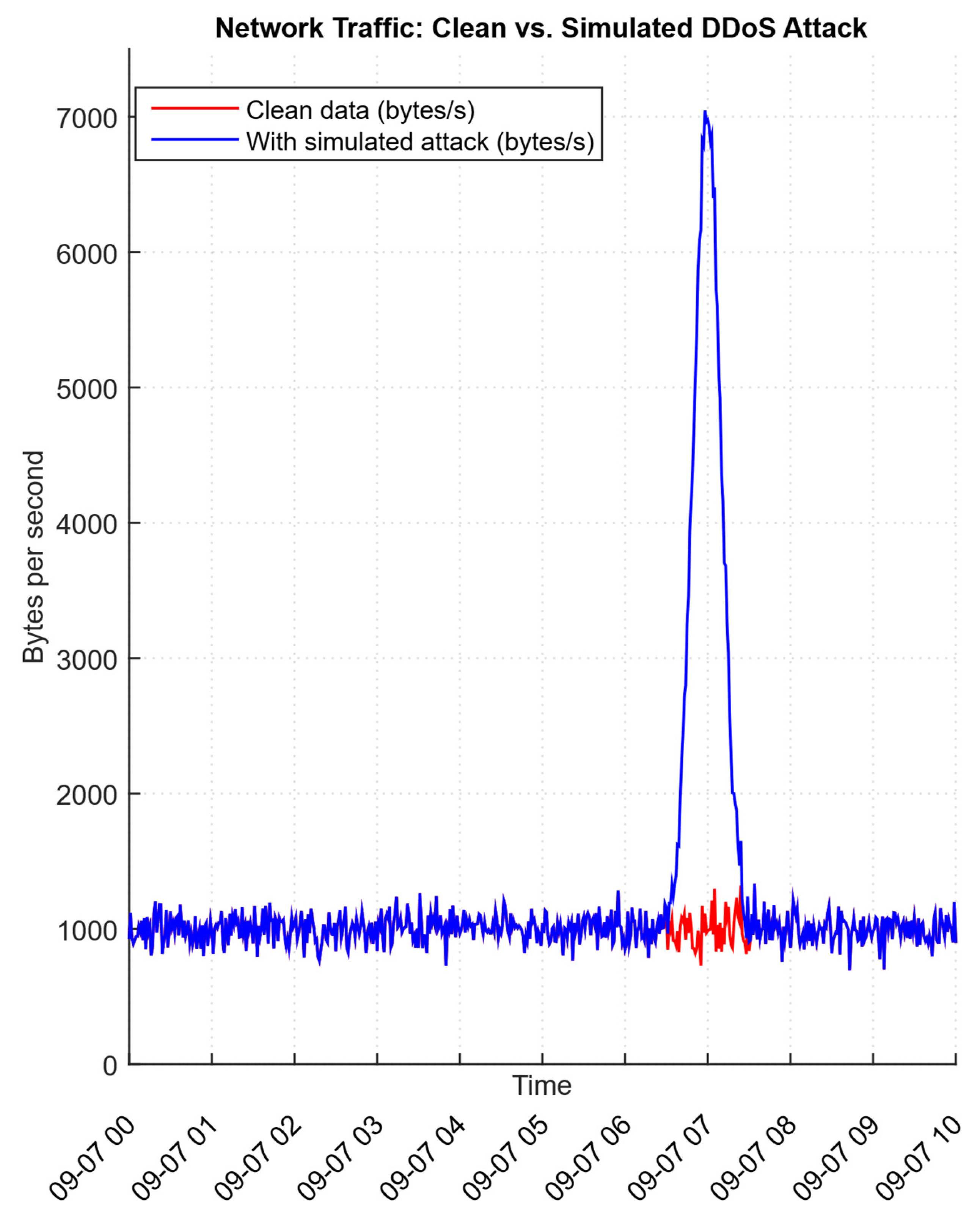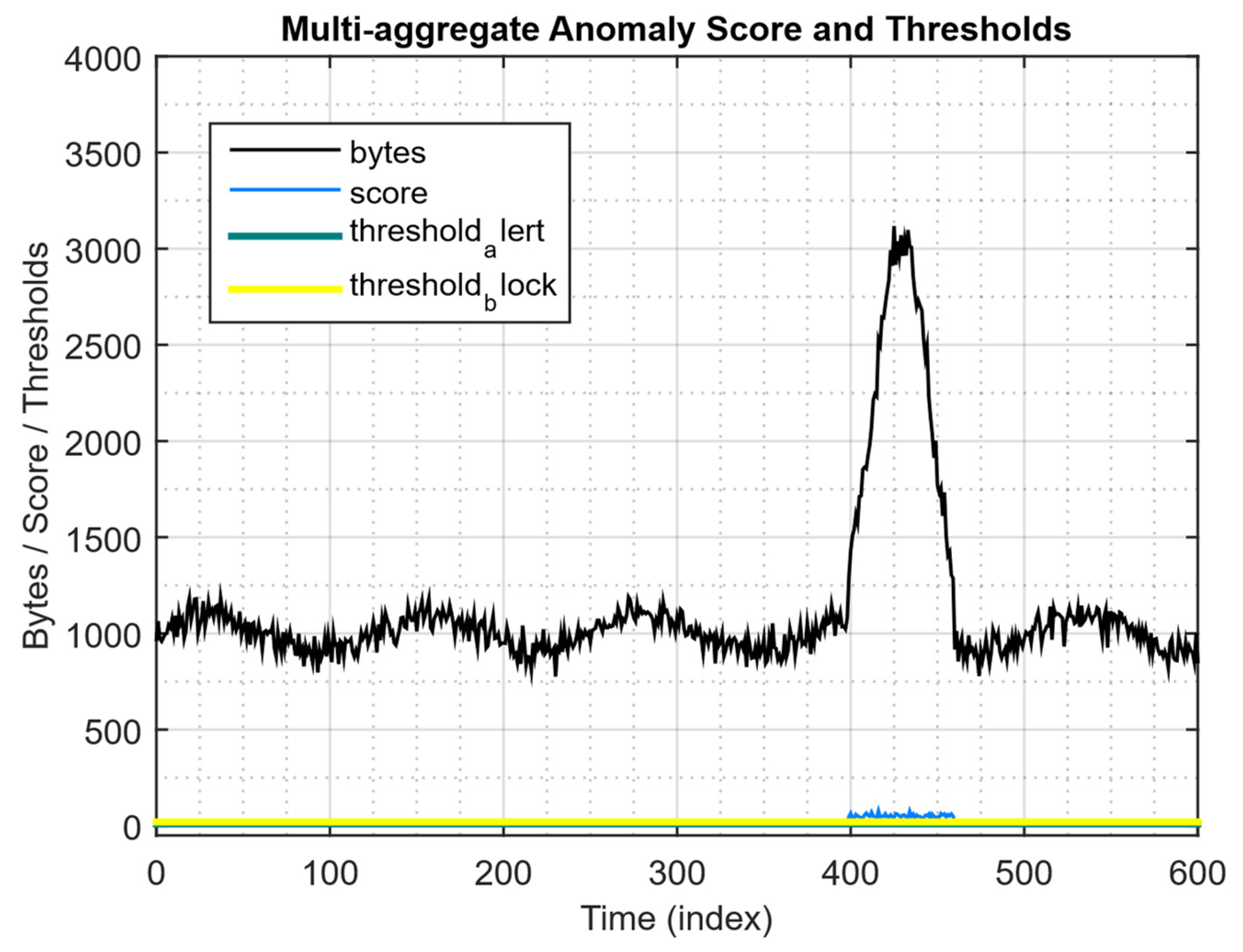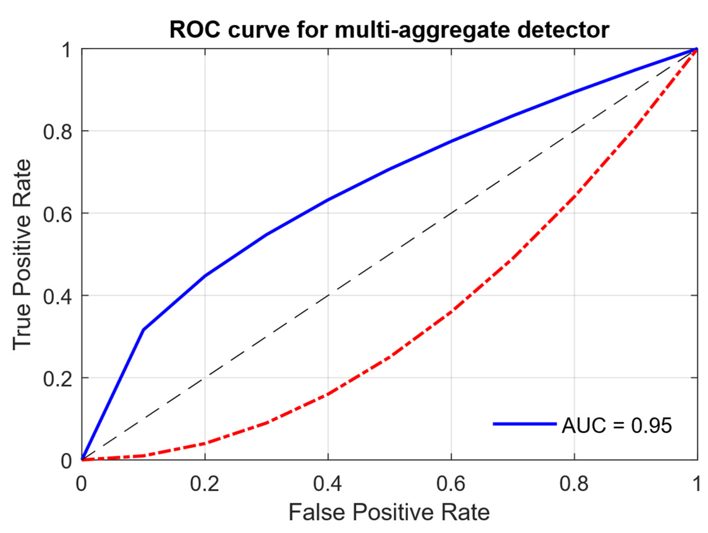 Consider an observation flow (network telemetry) in discrete time t = 1, 2, … Each observation is a feature vector Xt ∈ ℝd. In the idealized model, there is a “normal” (without attack) probability distribution P0 with density p0(x) and a “malicious” distribution P1 (or one P1) family with density p1(x). The detector task is to establish the difference between hypotheses based on the observed data {Xt}: