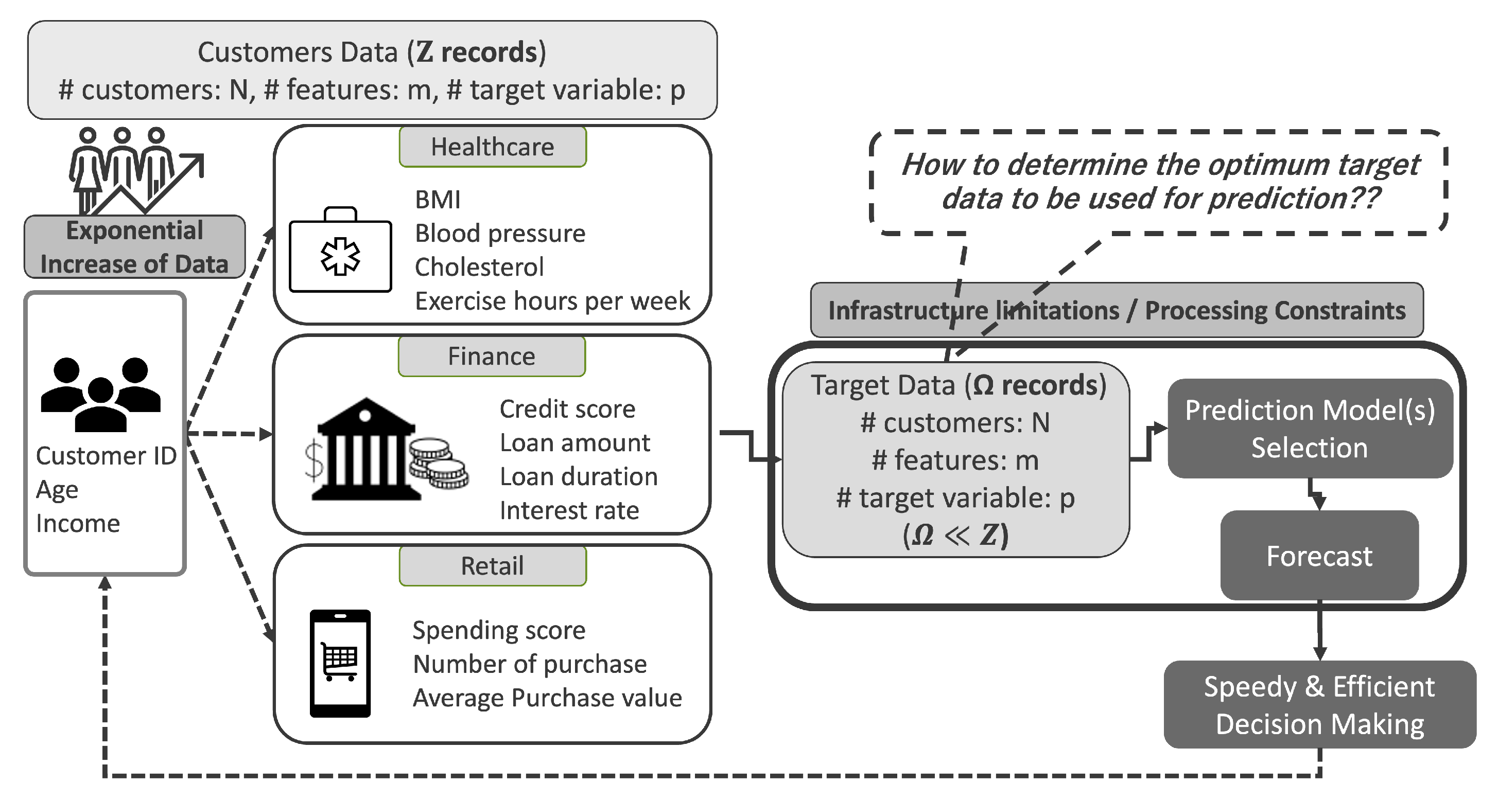 The central research problem addressed in this paper is designing forecasting methods that remain computationally feasible while preserving the statistical richness of multivariate data. Previous research advanced big data analytics by proposing quantitative definitions of “data bigness” and the “3Vs” framework (volume, velocity, variety) [
