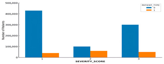 The study moved further into the living patient data set through working on data preparation as well as processing steps, with similar approaches as the deceased patient data set. Our model, which was trained using the data from the patients that have succumbed to the disease, served us in mimicking the process of data segmentation and optimization to include predictive severity scores. It was then applied to the current status of patients to estimate the hospitalization needs. This particular stage allowed us to ensure the model’s validity and its generalization capacity for cases not previously encountered. This analysis is visualized in Figure 12, which shows the distribution of patients by severity score and type of hospitalization.