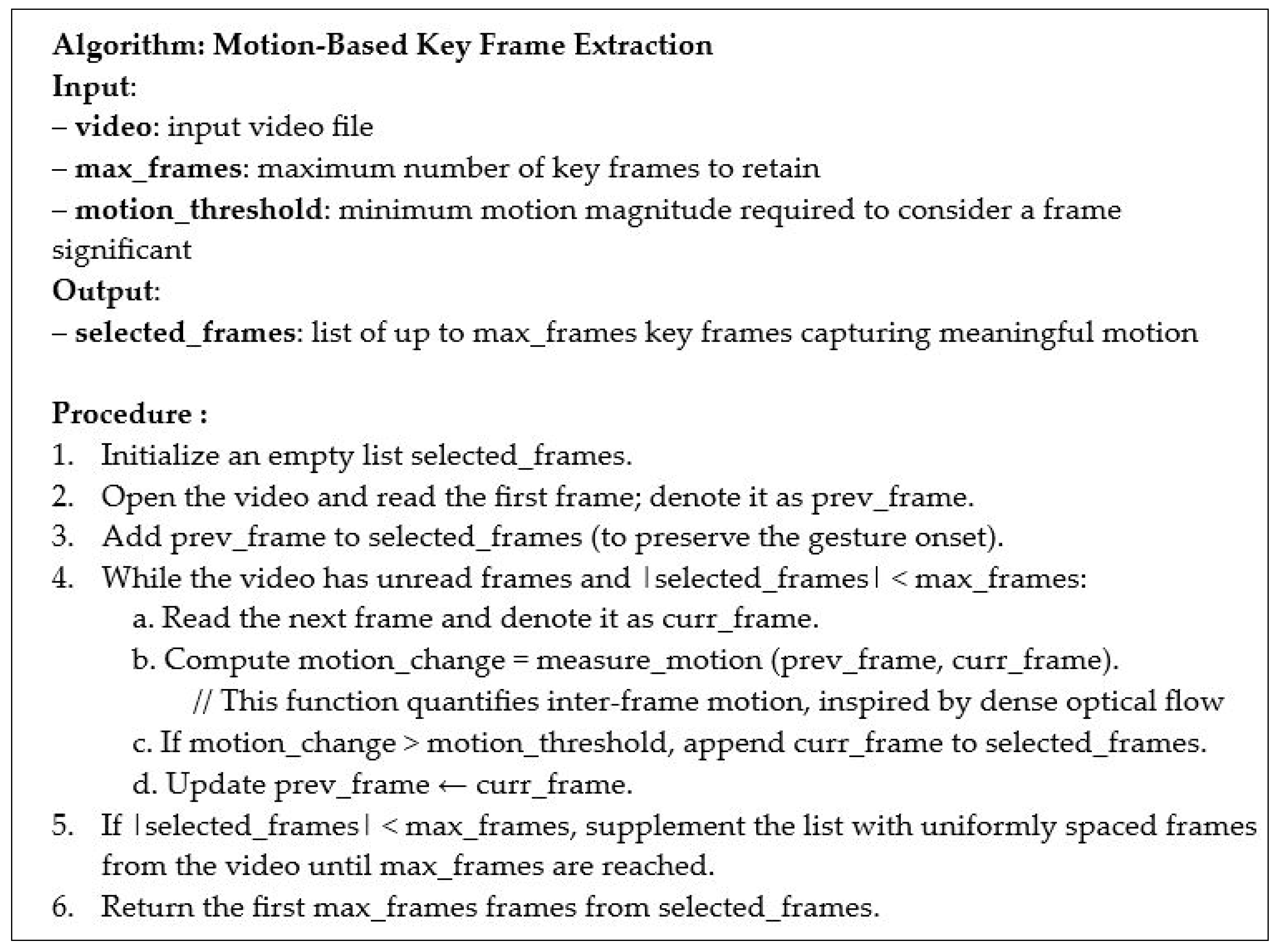 - A Keyframe Extraction approach leveraging motion detection has been introduced, incorporating a novel configuration strategy that ensures uniform key frame selection. This enhancement improves computational efficiency, making the technique both precise and highly effective.
