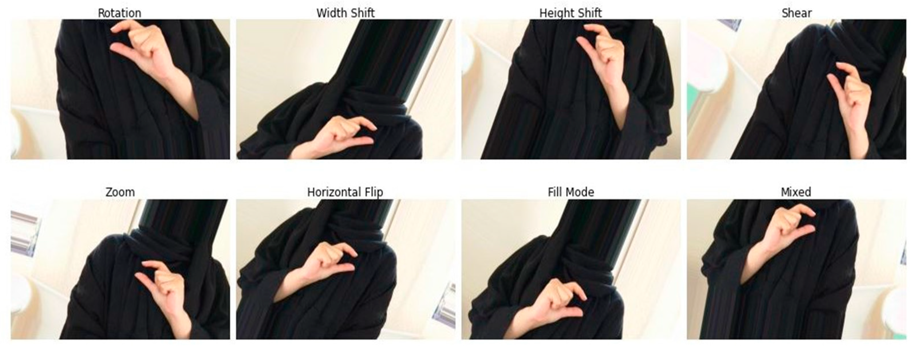 - Al-Barham, M.; Sa’Aleek, A.A.; Al-Odat, M.; Hamad, G.; Al-Yaman, M.; Elnagar, A. Arabic Sign Language Recognition Using Deep Learning Models. In Proceedings of the 2022 13th International Conference on Information and Communication Systems (ICICS), Irbid, Jordan, 21–23 June 2022; pp. 226–231. [Google Scholar]