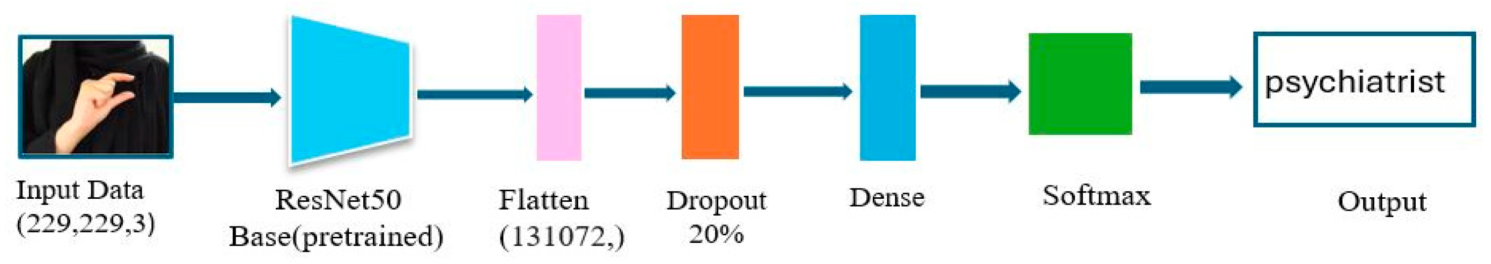- Rathi, P.; Kuwar Gupta, R.; Agarwal, S.; Shukla, A. Sign Language Recognition Using ResNet50 Deep Neural Network Architecture. In Proceedings of the 5th International Conference on Next Generation Computing Technologies (NGCT-2019), Dehradun, India, 20–21 December 2019. [Google Scholar] [CrossRef]