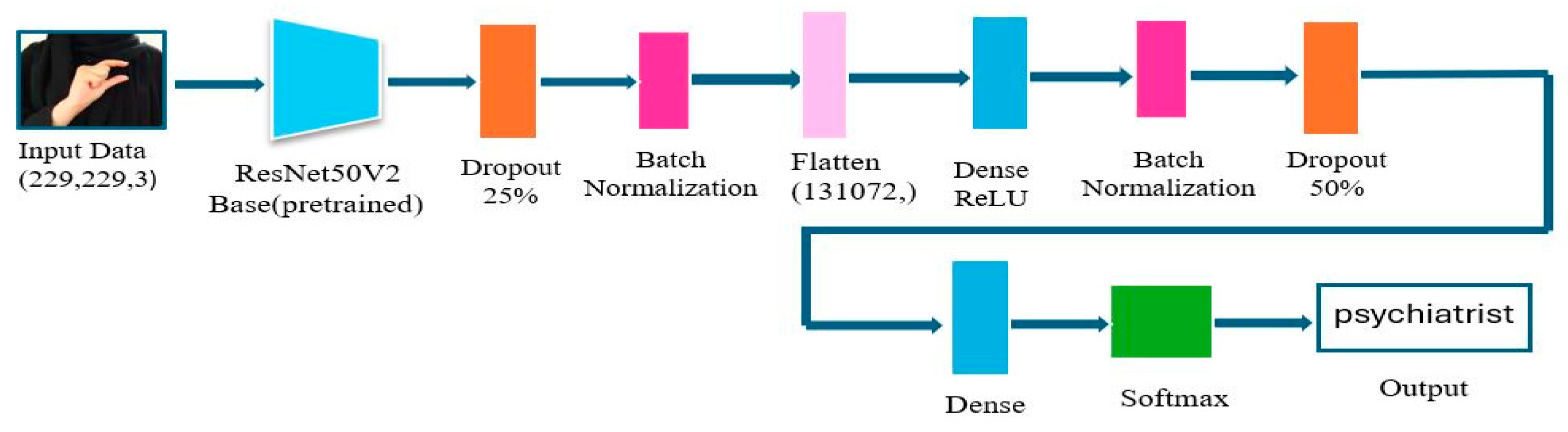 5.3. Approach 3: Architecture of ResNet50V2 Modified