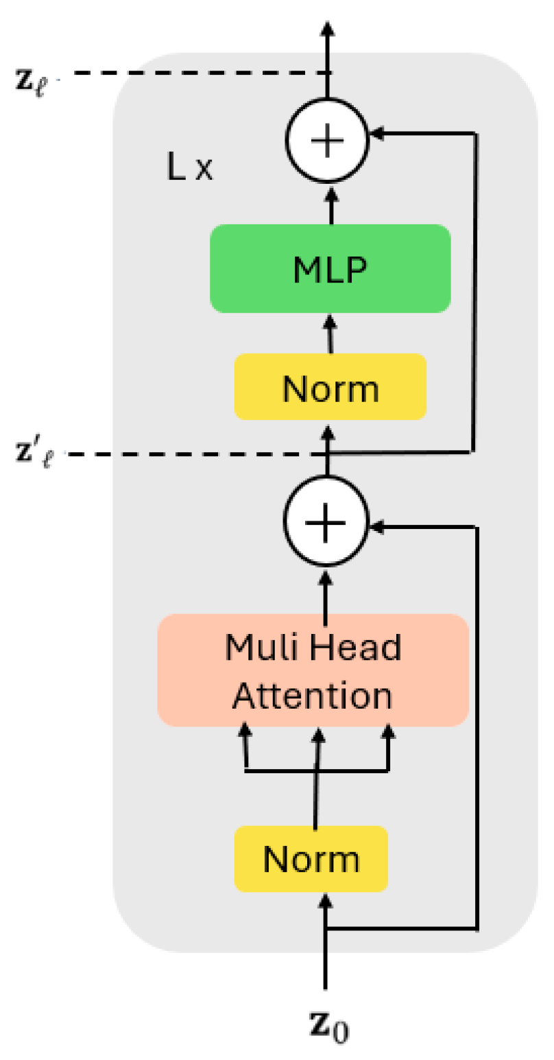- Dosovitskiy, A.; Beyer, L.; Kolesnikov, A.; Weissenborn, D.; Zhai, X.; Unterthiner, T.; Dehghani, M.; Minderer, M.; Heigold, G.; Gelly, S.; et al. An Image is Worth 16x16 Words: Transformers for Image Recognition at Scale. arXiv 2021, arXiv:2010.11929. [Google Scholar] [CrossRef]