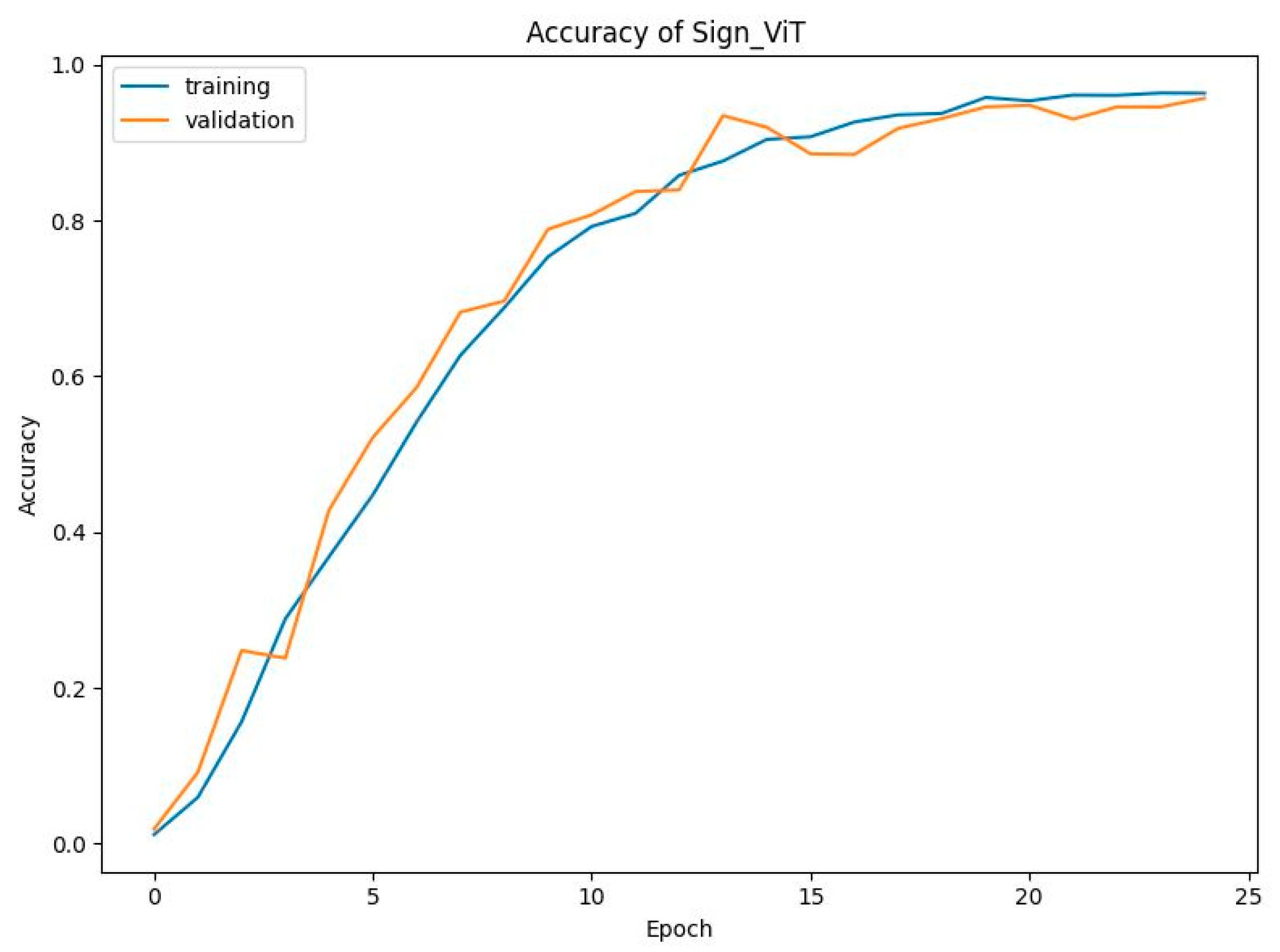 | Shin et al., 2023 [8] | Public Self-Build | 77 20 | Korean Sign Language (KSL) | Multi | vision-based transformer | 89% 98.3% |