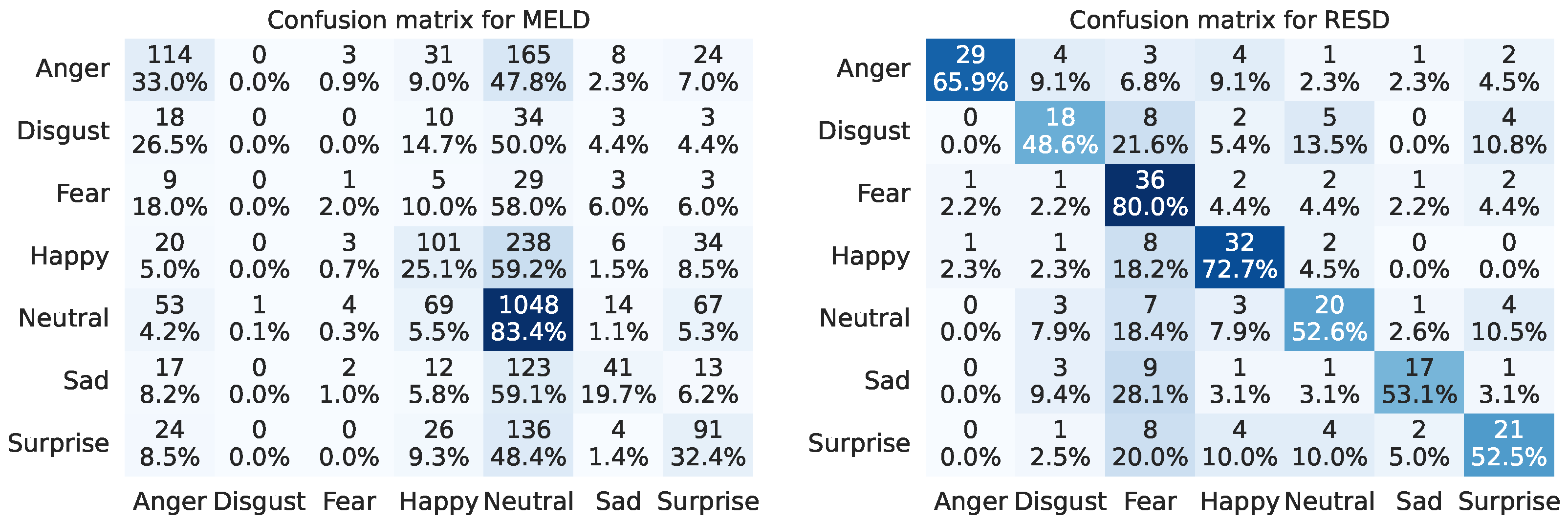 https://huggingface.co/datasets/Aniemore/resd, accessed on 28 September 2025) and Multimodal EmotionLines Dataset (MELD) (English) [