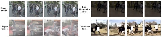 Instances of domain shift under simulated real-world conditions: Occlusions, Rainy Scene, Foggy Scene, and low-illumination environments. These four examples are examples where the baseline model tends to yield detection errors. By combining CoMT VD, all models will obtain more accurate detection results.