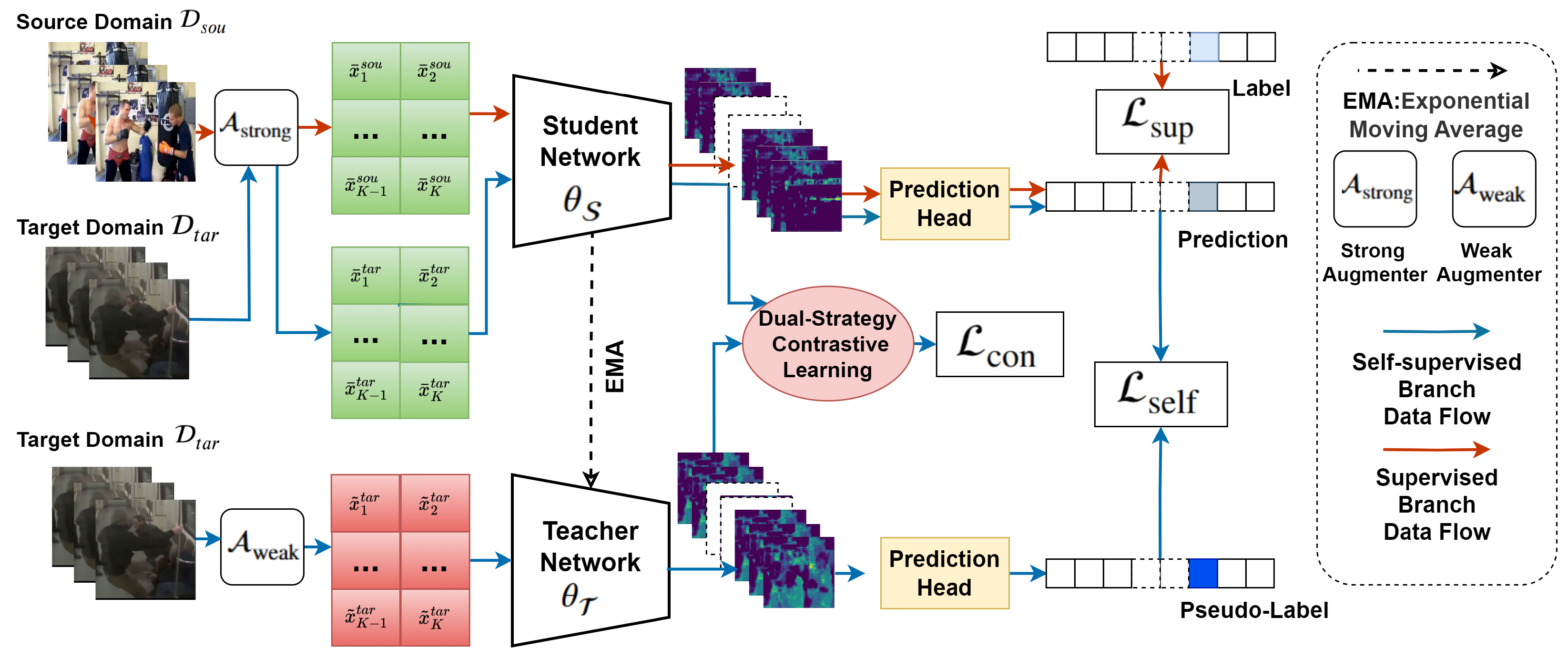 - Da Costa, V.G.T.; Zara, G.; Rota, P.; Oliveira-Santos, T.; Sebe, N.; Murino, V.; Ricci, E. Dual-head contrastive domain adaptation for video action recognition. In Proceedings of the IEEE/CVF Winter Conference on Applications of Computer Vision, Waikoloa, HI, USA, 3–8 January 2022; pp. 1181–1190. [Google Scholar]