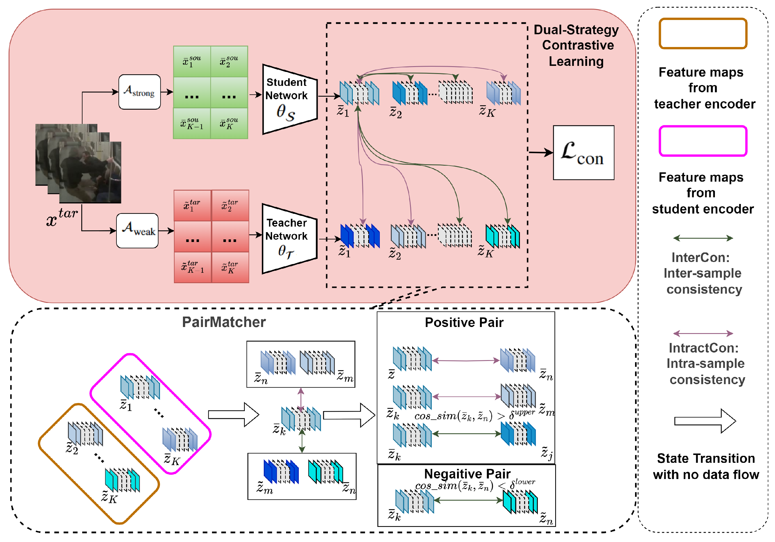 - Kumar, A.; Mitra, S.; Rawat, Y.S. Stable mean teacher for semi-supervised video action detection. In Proceedings of the AAAI Conference on Artificial Intelligence, Philadelphia, PA, USA, 25 February–4 March 2025; Volume 39, pp. 4419–4427. [Google Scholar]