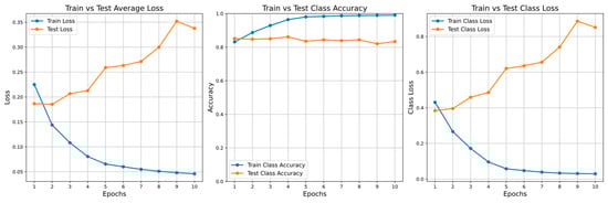 The model parameters were optimized using the AdamW [] optimizer with a learning rate of 0.00005 and a weight decay of 0.01. AdamW, a variant of the Adam optimizer [], was selected due to its proven effectiveness in training transformer-based architectures. Unlike traditional Adam, AdamW decouples weight decay from the gradient update, resulting in more stable training and better generalization, especially important when fine-tuning large pretrained models.