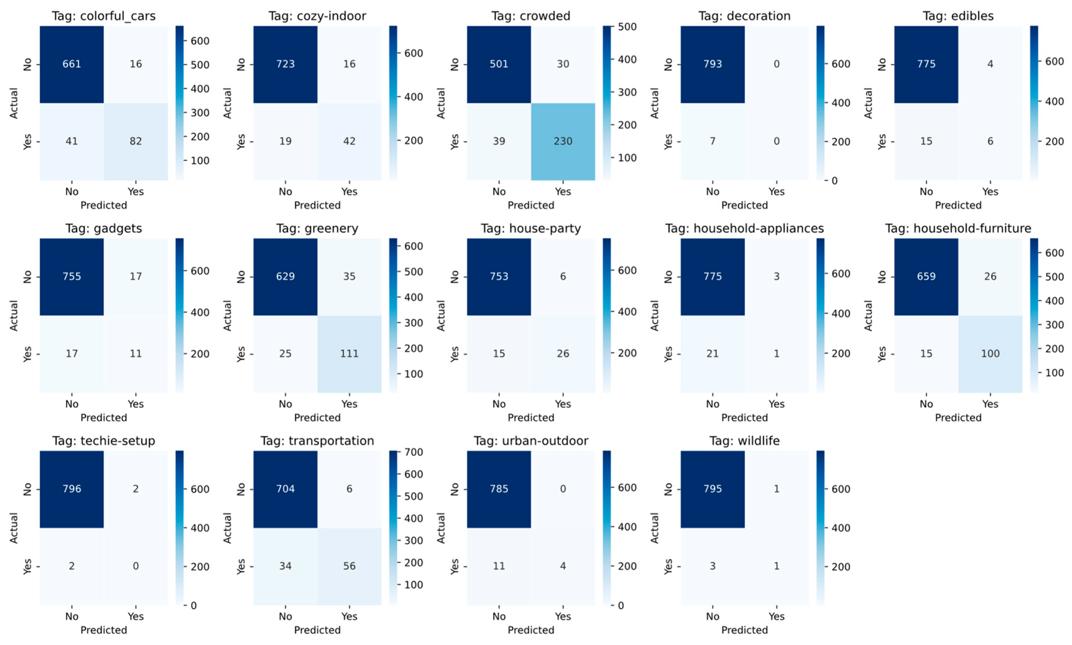 - Tags Head: A multi-label prediction head designed to identify all relevant descriptive tags associated with an image (e.g., crowded, colorful_cars).