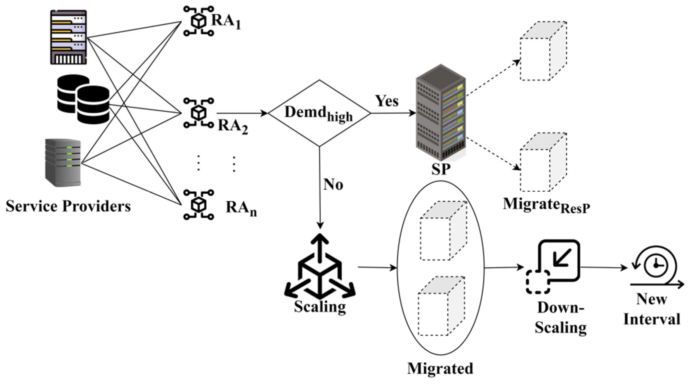 Figure 5. This migration process is different for up-scaling and down-scaling resources.