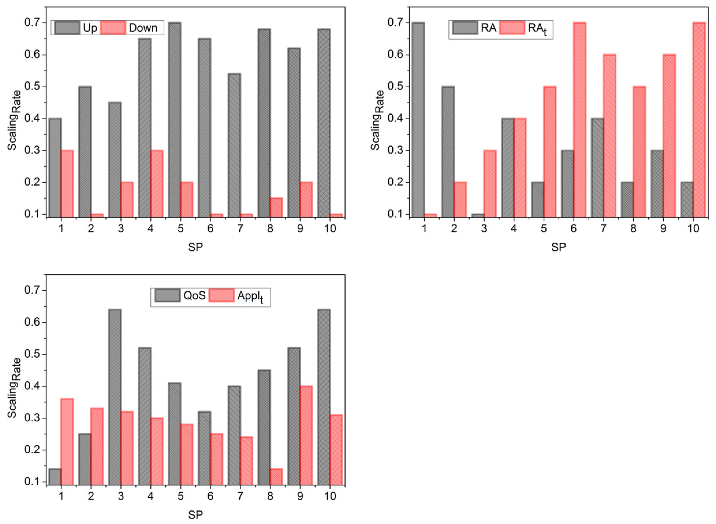 factor is presented. The comparison takes place for the QoS requirement factor and the application response factor independently. This does not consider the QoS and the application; rather, the variables used represent the QoS factor and the application response factor estimated from the maximum requests/demands received in
