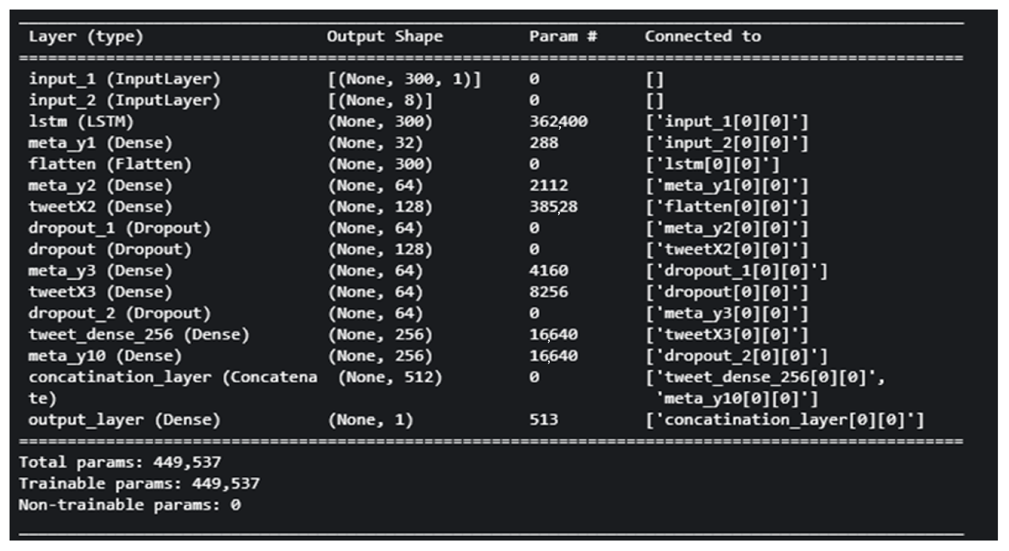 • Two-Branch Deep Learning Model: To achieve this objective, a two-branch deep learning model is implemented. One branch utilizes dense layers, while the other branch employs LSTM (Long Short-Term Memory) layers. This architecture permits the model to discover relevant patterns and features from the mixed data.