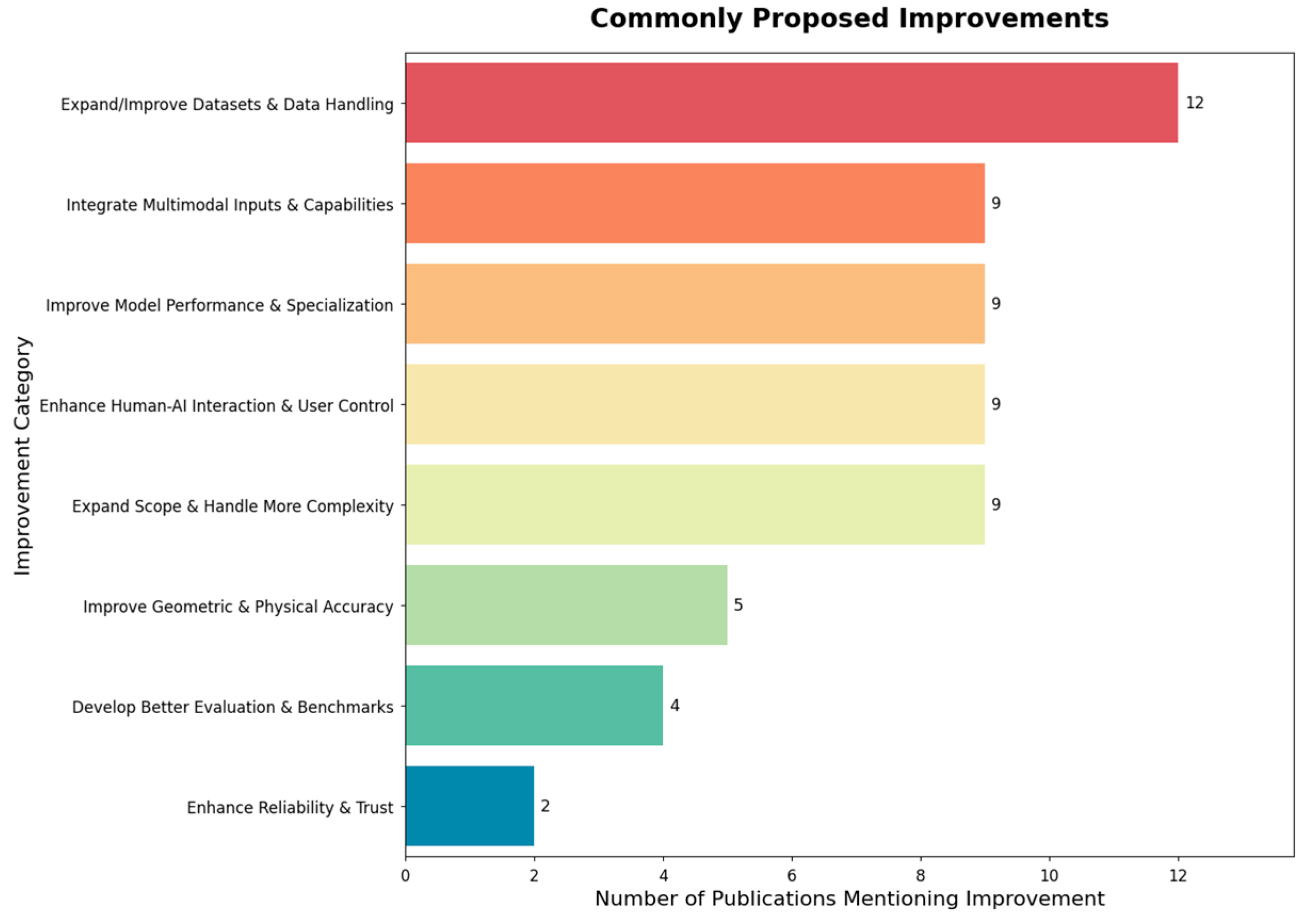 Figure 12. Proposed Future Improvements. The most frequently suggested improvements for future work, with a primary focus on expanding and improving datasets.