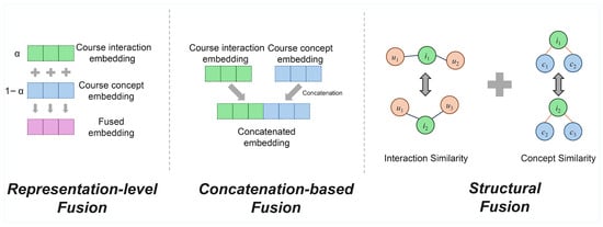 - Representation-level Fusion, where concept embeddings are combined with course embeddings to generate a new semantic representation used in prediction;