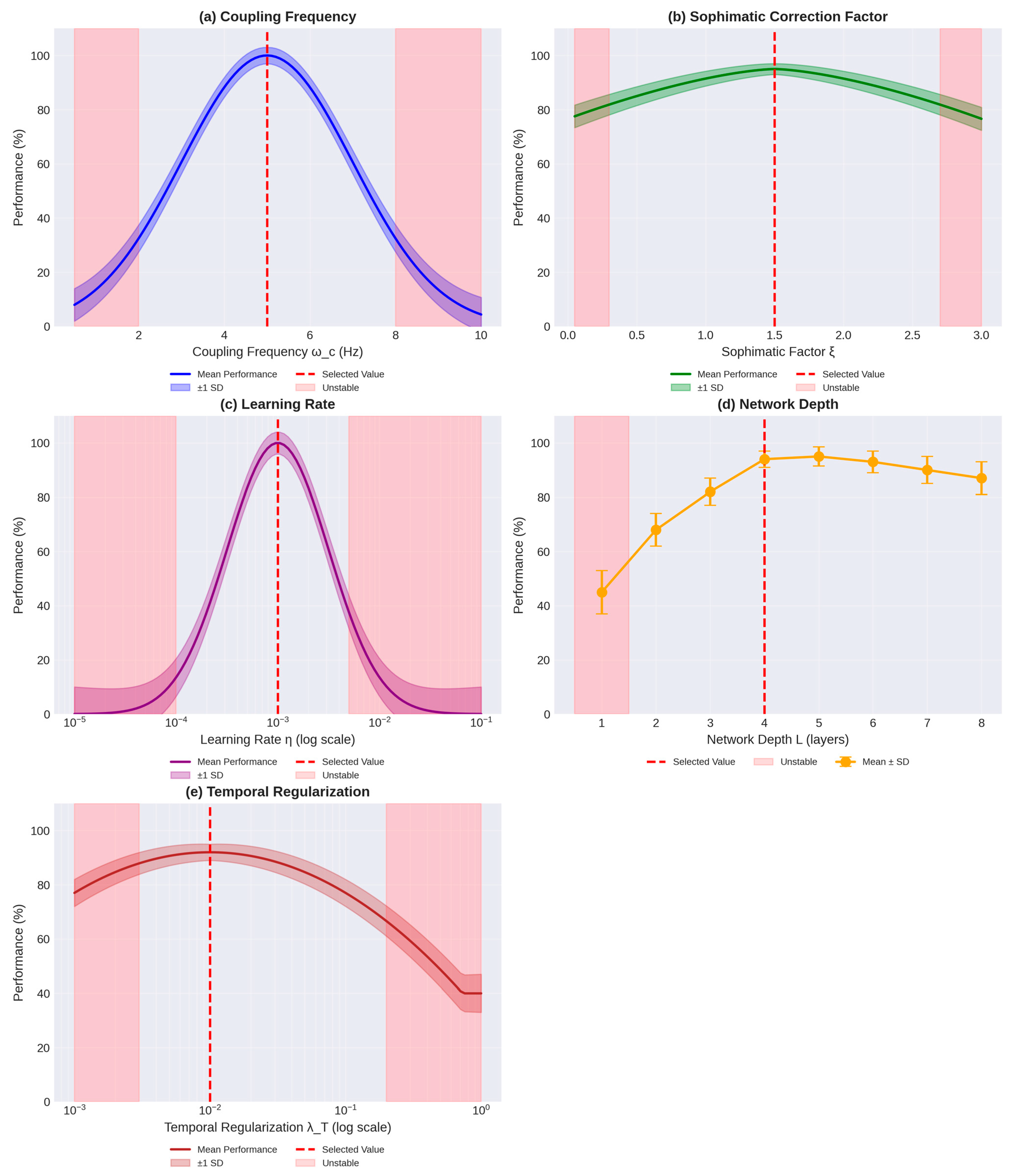 | Coupling frequency (cognitive) | 5.0 Hz | Empirical optimization | 3.0–7.0 Hz (robust) | |