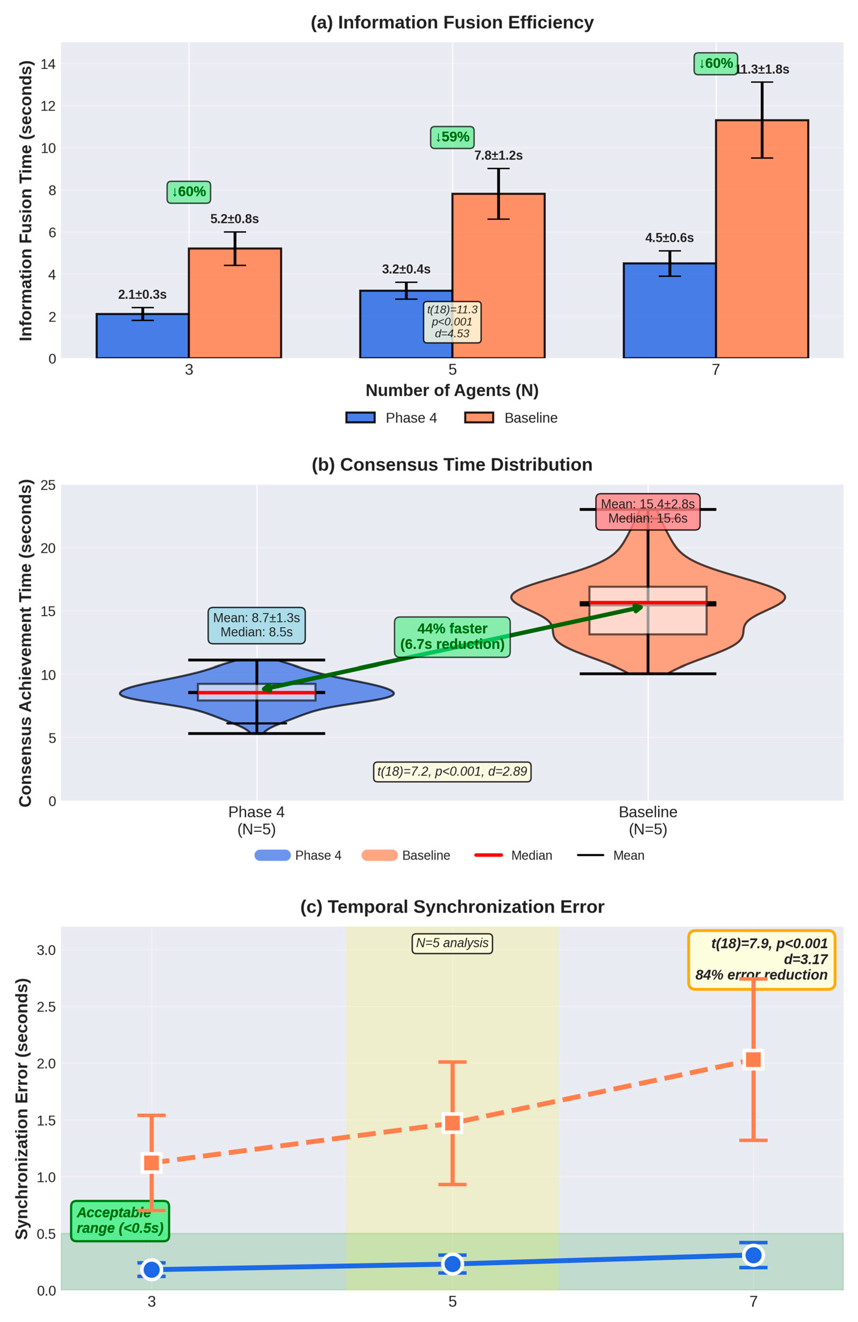- Phase 4 vs. Phase 1: t(98) = 31.2, p < 0.001, Cohen’s d = 4.43.