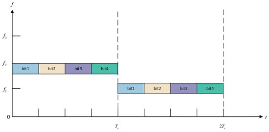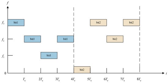 Based on the ratio between the frequency-hopping period and the code symbol period, frequency-hopping signals can be categorised into fast and slow frequency hopping. Figure 5 and Figure 6 show that represents the frequency-hopping period in fast frequency-hopping systems, while denotes the frequency-hopping period in slow frequency-hopping systems. The signal will be called a fast frequency-hopping signal when its frequency-hopping cycle is shorter than the code cycle. In this mode, a single code element often spans multiple frequency-hopping cycles and undergoes repeated frequency changes, significantly enhancing anti-interference capabilities. However, the rapid frequency changes also pose significant challenges for receivers in terms of high-frequency estimation accuracy requirements and increased processing complexity when receiving information. Therefore, despite the strong anti-interference capabilities of fast frequency-hopping signals, their modulation identification remains a major technical hurdle, with relatively scarce research in this area.